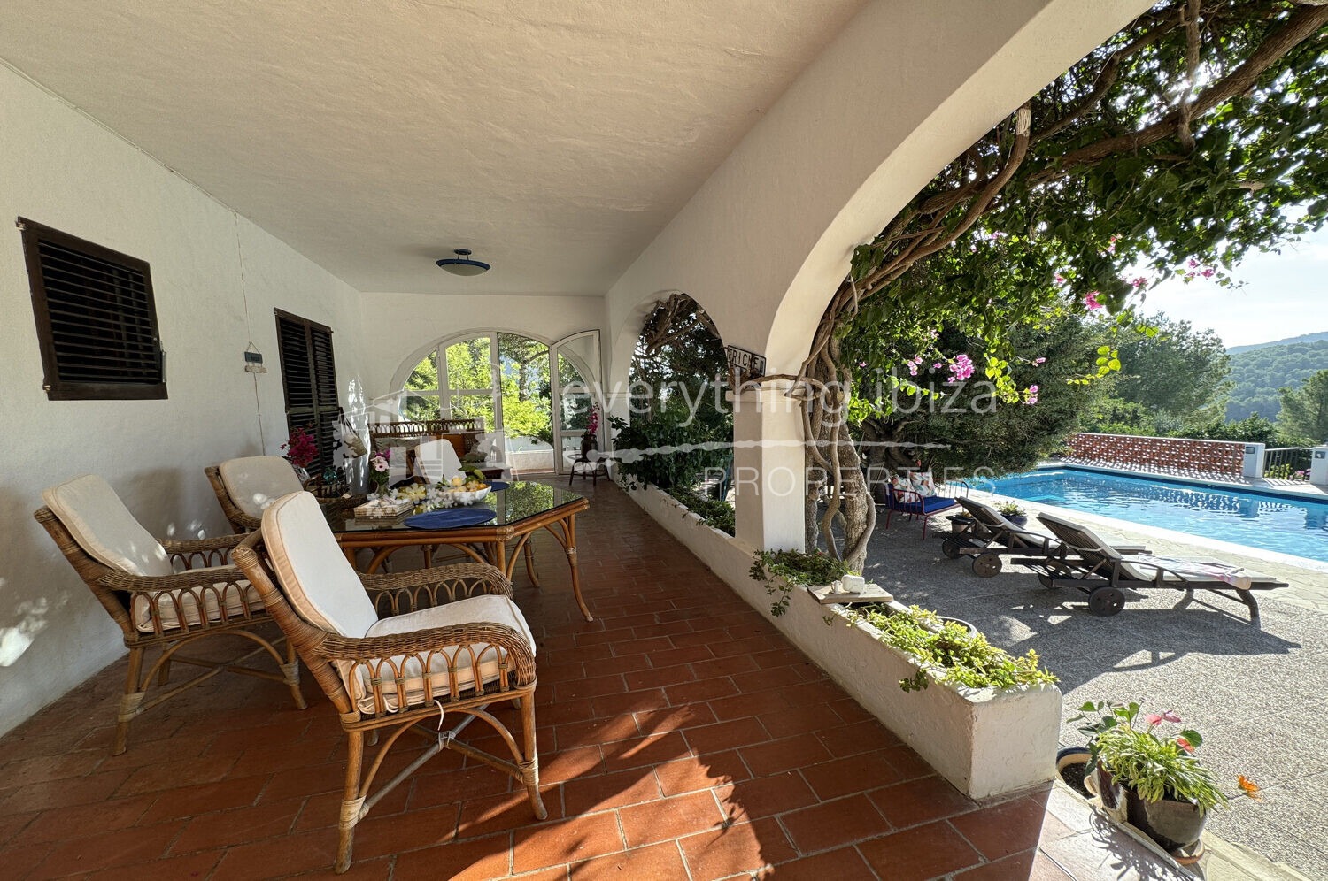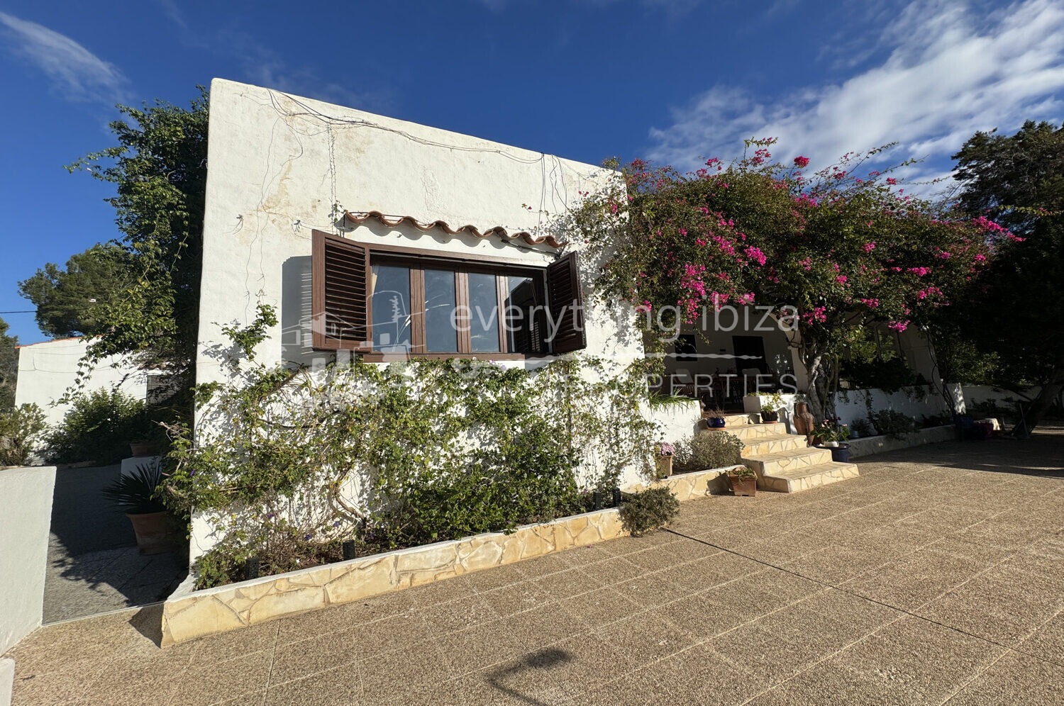 La propiedad está rodeada de flores de Bouganvila, frutales e higueras. La villa muy acogedor es una verdadera joya en términos de diseño, servicios y ubicación que ofrece una experiencia única de tranquilidad y belleza estética en un entorno rural. Situado no muy lejos de Can Tomas y San Rafael, esta hermosa villa / finca también ofrece hermosas vistas de la hermosa campiña circundante.